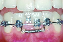 Die Huckepackfeder ist ein aufklemmbares Druckfederelement, welches sicher und einfach eingesetzt wird. In der Nivellierungsphase ist häufig bereits ein Druck auf die engstehenden Zähne erforderlich.